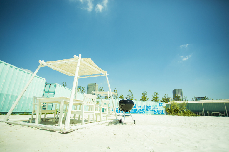 都心で味わうリゾート気分、複合施設。日本初のPOPUP型コンテナモールと、イベントスペース、550トンの白い砂を敷きつめた550坪のビーチがあるバカンスカフェ。3つのエリアで構成された施設は、白をテーマに人気ブランドのショップが多数出店。全長100mに渡るビーチタウン、さまざまなイベントが行われる特設スペース、予約制でバーベキューなどコンテンツ多数。都心からすぐの気軽に行けるニュースポット。